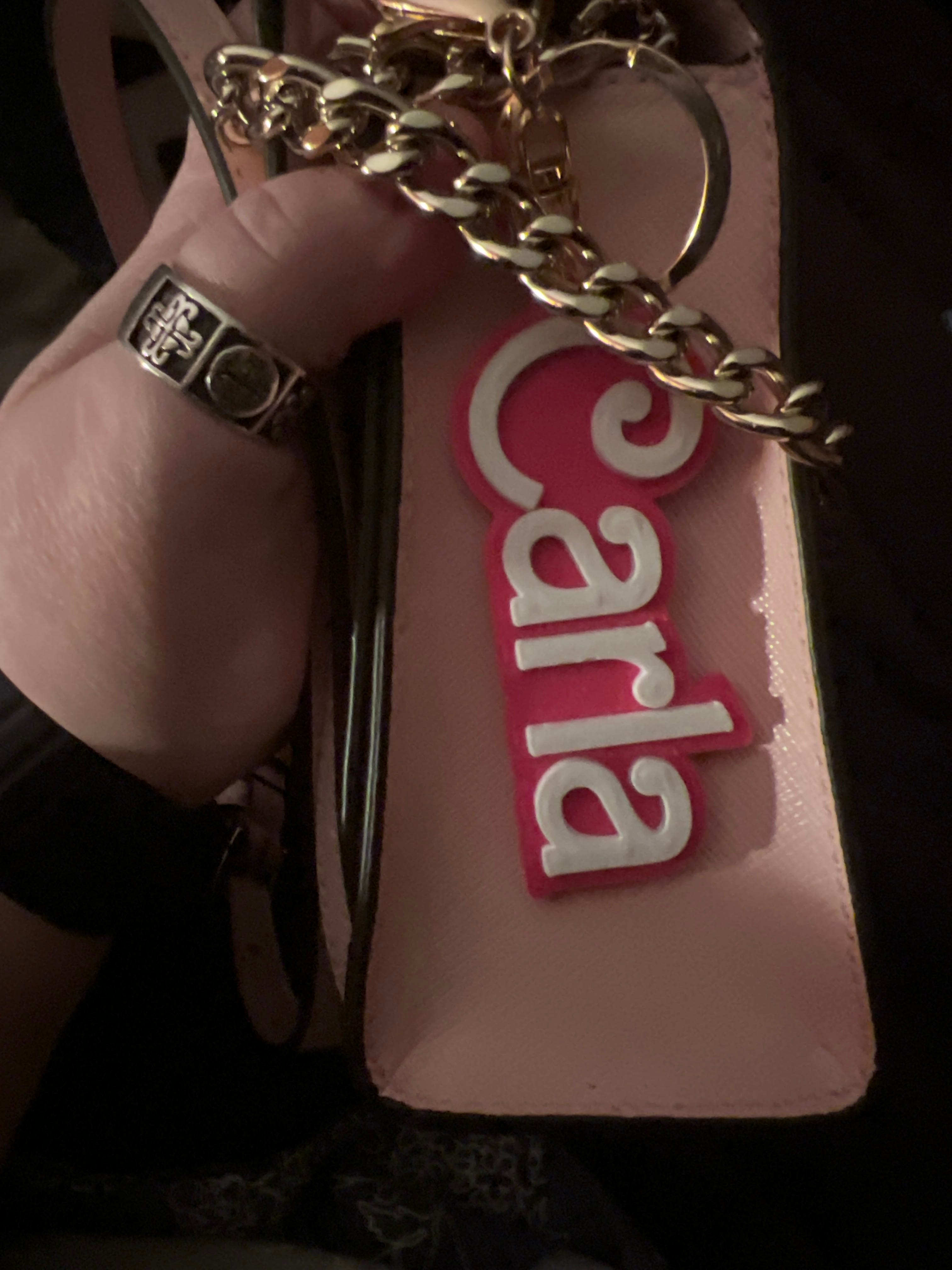 That pink thing hanging off my purse…that’s vindication from my childhood. I could never find anything personalized. Keychains, cups, pencils, anything they had in a store. Mom said it would really make me sad. I remember this feeling like I didn’t quite exist in this weird way. (“You can’t sit with us.”) It’s not that I wanted the trinkets, it’s that I wanted to see me reflected back at me. There were no Carlas in books at that time, none in movies or on tv, and none in stores.