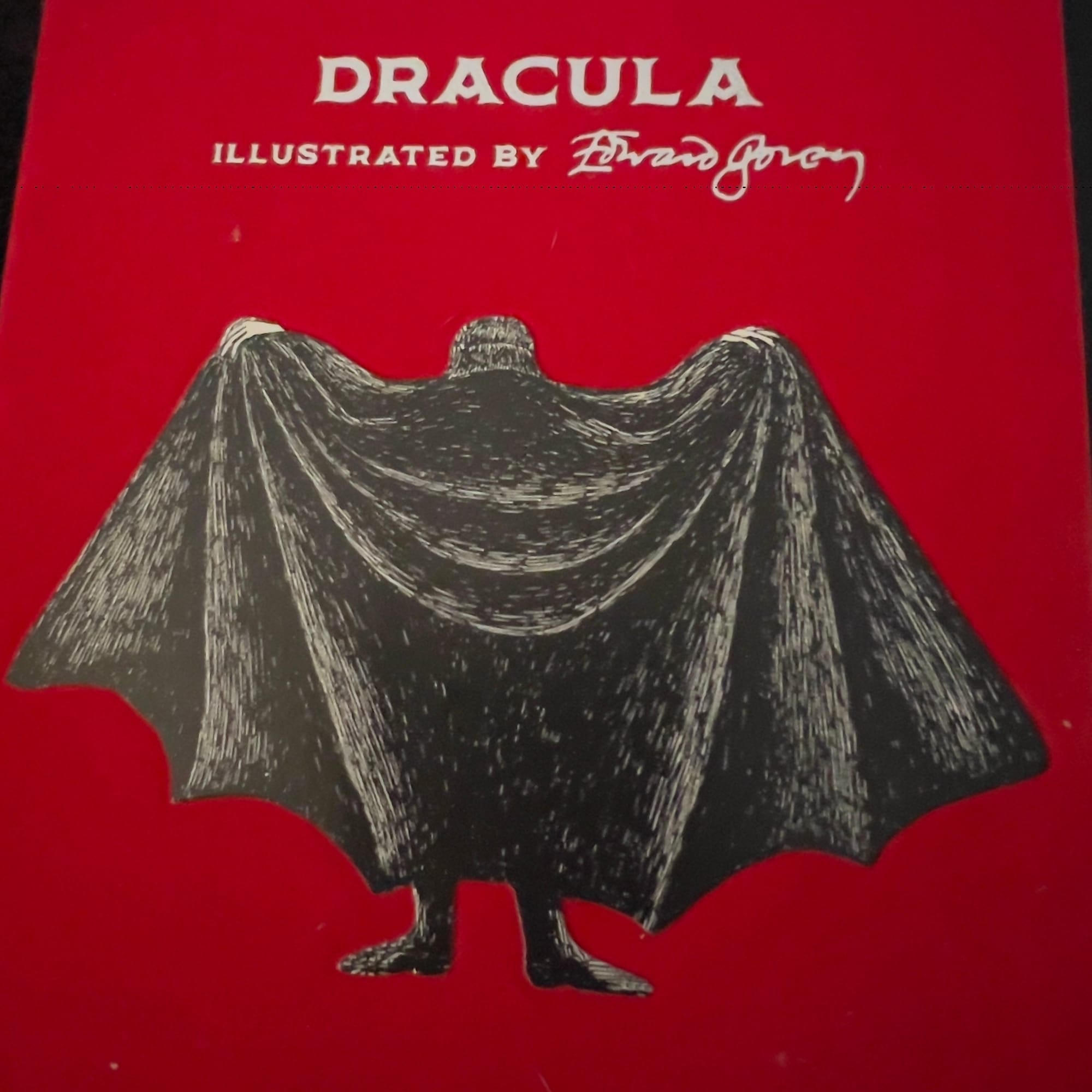 Did I say the Edward Gorey edition, with a red velveteen cover and bats painted on the endpieces? Yes, indeed, you shall have pictures. One of my prettiest books, I do declare. I adore Gorey.