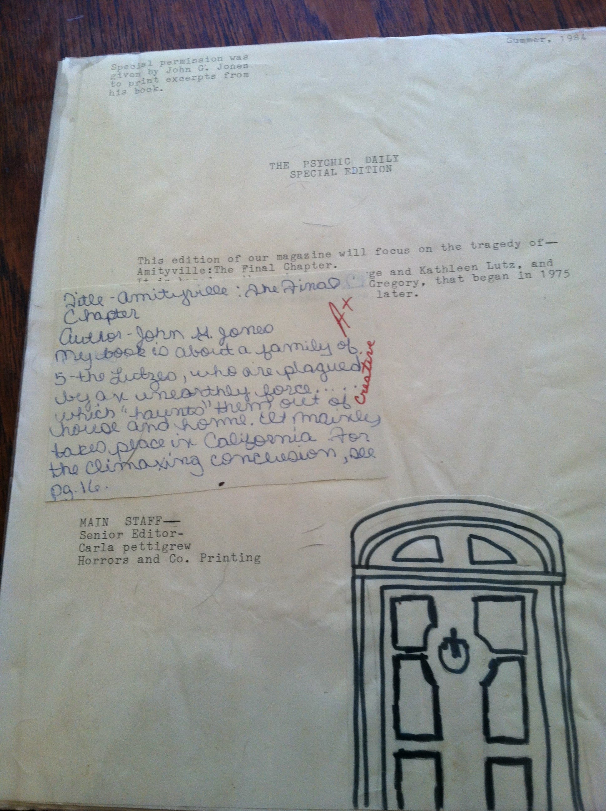 Another project for the same class was to create a magazine as a book project. Everyone chose Anne of Green Gables or something else age-appropriate. This weirdo chose Amityville: The Final Chapter by John G. Jones. I created an entire magazine based around the continuing story of the Lutz family. I’ll bet I was the talk of my country middle school’s teachers’ room.